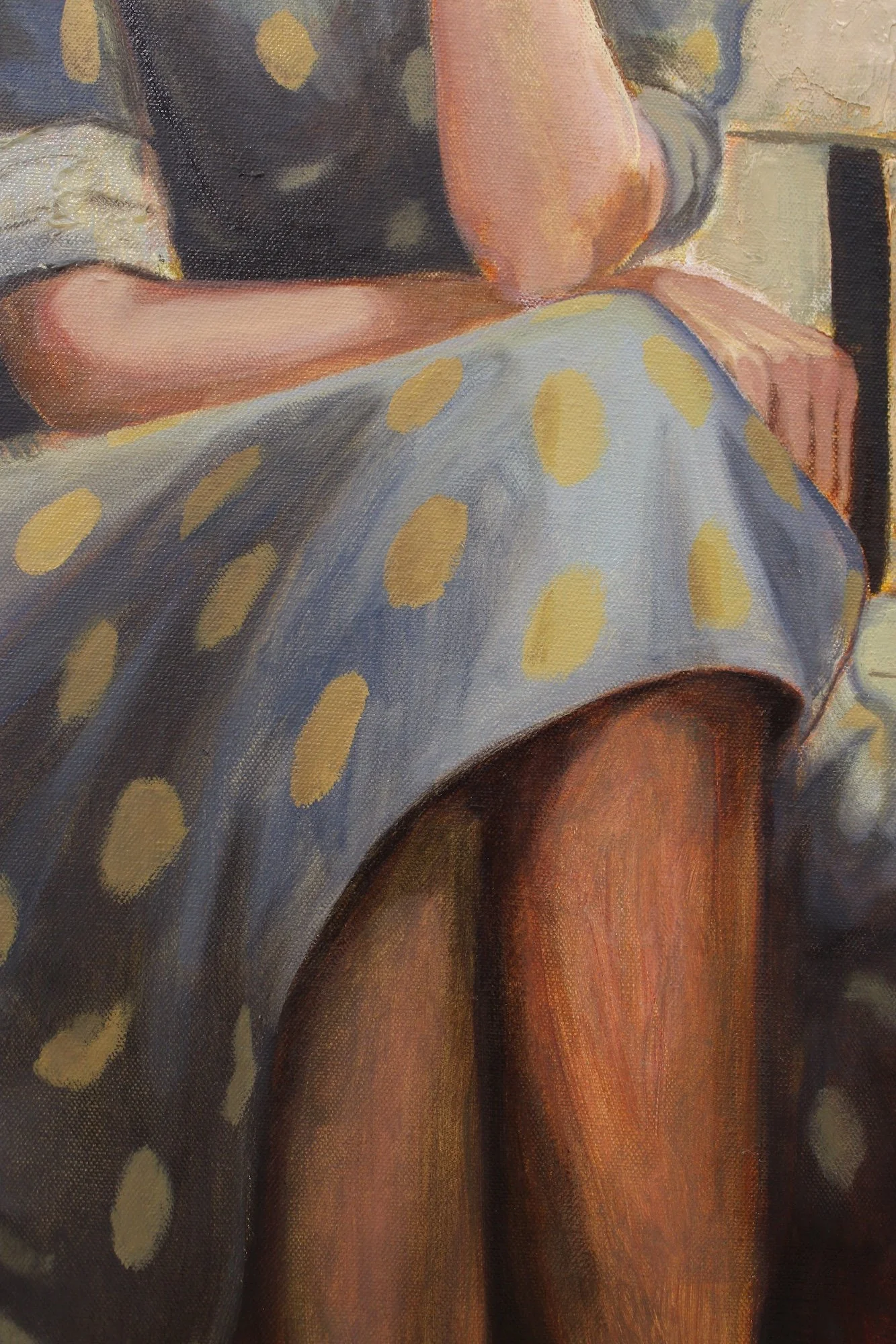 The surface bears the marks of time with layers eroded and rebuilt, gestures scraped across like geological strata. The painting is a body that is at once weathered stone and vulnerable skin.